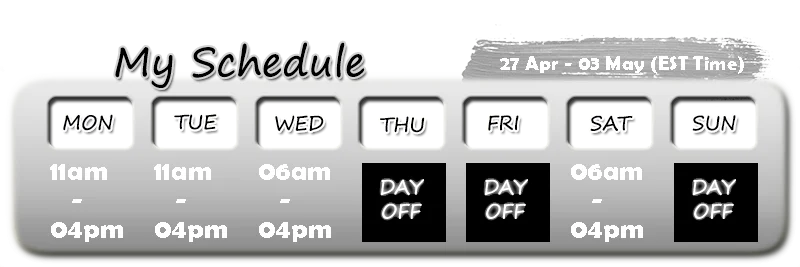 Ahegao, Linguagem explícita, De quatro, Dança erótica, Brinquedos sexuais, Tapas, Topless, Exibicionismo, Rebolando, Striptease, Massagem, Fetiche por pés, Gozada, Penetração com dedos, Dildo ou vibrador, Punheta, CEI, Gozada na cara, Boquete, Orgasmo, Cavalgada, Mandar bater uma, Masturbação, Show com óleo, Anal, Anais, Engolir, Garganta profunda, Humilhação, SPH, Ejaculação, Gozando dentro, Avaliação de pintos